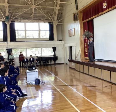 3月26日(木)、修了式と離任式を行いました。児童生徒の皆さんは、今年度の最終登校日です。