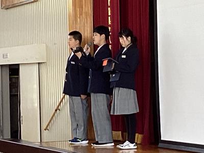 全校集会を進行する生徒会役員のみなさんの紹介がありました。