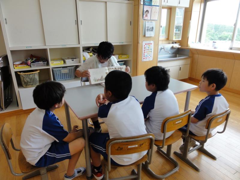 個別学習では、一人一人の課題に合わせ、2語文の書き写しや文字カードを並べ変えて単語づくりに取り組むなど、どの子も真剣に机に向かっています。